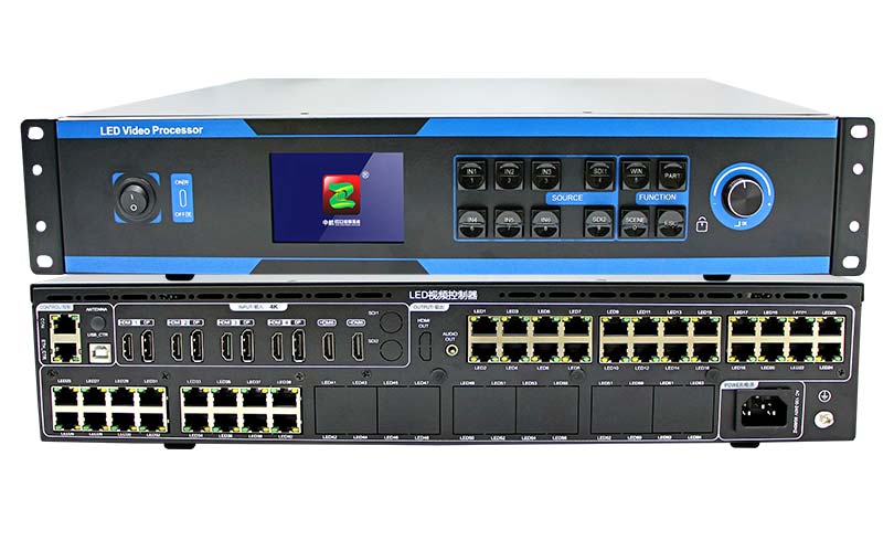 ZH-Z40 4K二合一視頻處理器是中航軟件為滿足LED大屏安裝方便精心打造的一款產(chǎn)品。支持HDMI、DP等高清信號四畫面任意漫游輸入;最大可接收4096*2160@60Hz像素的高清數(shù)字信號,支持40路千兆網(wǎng)口輸出,單機帶載支持最寬16384像素,或最高8192像素的大屏。采用全新通信架構(gòu),高刷新、高亮度、全新灰度掃描引擎,納秒級同步,惡劣通信狀態(tài)仍能保持通信順暢,讓廣大用戶感受更多彩、更美好的LED世界!