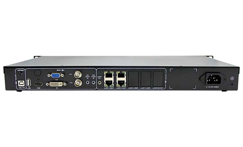 · 支持以下輸出信號接口:LAN(RJ45)×4(帶網(wǎng)口連接狀態(tài)指示),整機(jī)最大支持分辨率為260萬像素,支持自定義分辨率,最寬8192像素,最高2160像素;單網(wǎng)口寬度最大2048,高度最大1920;Audio音頻(PJ35)×1;