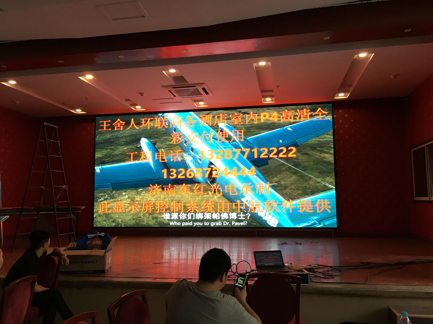 山東省濟南市環(huán)聯(lián)商務(wù)酒店 室內(nèi)P4 ,總點數(shù)1600×768(寬×高)1張發(fā)送卡,10張接收卡完美帶載!單卡最大帶載320×384(寬×高),感謝濟南東紅光電徐總對中航的信任和認可,我們會更加努力!中航V5全彩系統(tǒng),讓效果證明實力!