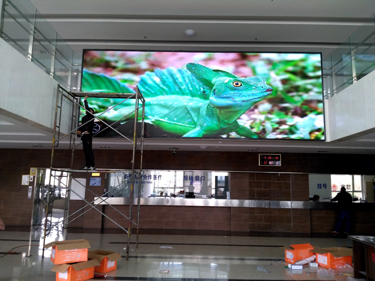 吉林省某縣醫(yī)院?jiǎn)挝?/span>,戶內(nèi)P4 單卡帶載320*256(高*寬)時(shí)效果,一張發(fā)送卡14張接收卡完美帶載!