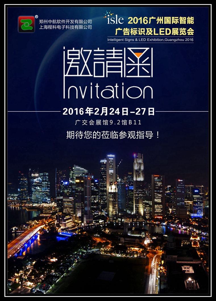 2016年,廣州國際智能廣告標示及LED展覽會將于2月24-27日在廣交會展館舉辦!中航軟件展臺方案經過兩個月的精心策劃,閃亮亮相!中航軟件誠邀您蒞臨9.2館B11展臺參觀指導!