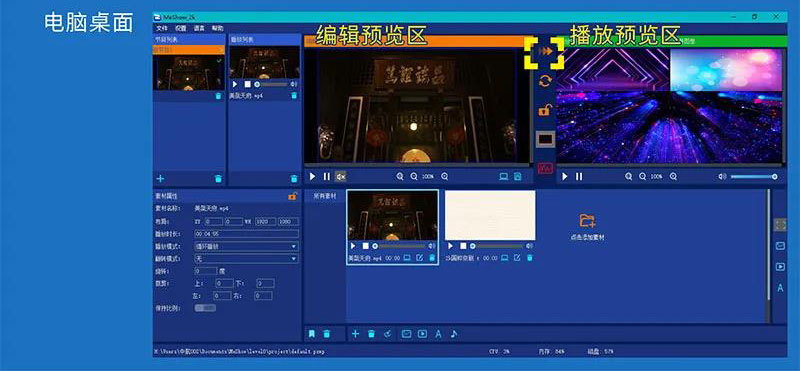 ·支持素材屬性調(diào)節(jié):如:位置、大小角度等;