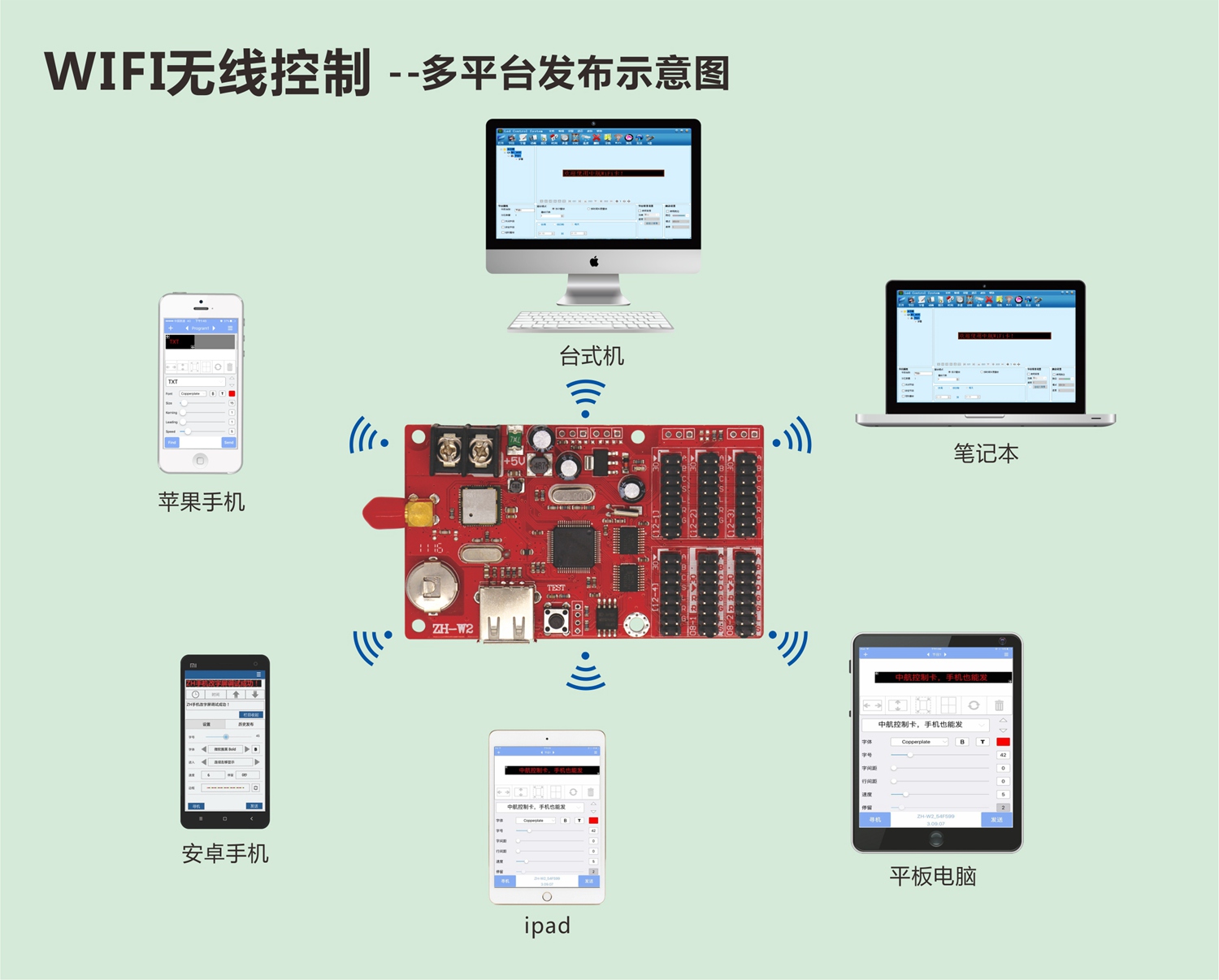 對(duì)于LED控制系統(tǒng),一方面:WIFI卡就相當(dāng)于一個(gè)無線路由器,打開手機(jī)WIFI找到控制卡發(fā)出的信號(hào)(ZH-W開頭的WIFI信號(hào))連接,再進(jìn)入操作軟件LED魔寶操作;另一方面:WIFI芯片幾乎決定控制卡的信號(hào)強(qiáng)度、信號(hào)穩(wěn)定性及長時(shí)間運(yùn)行是否頻點(diǎn)漂移。